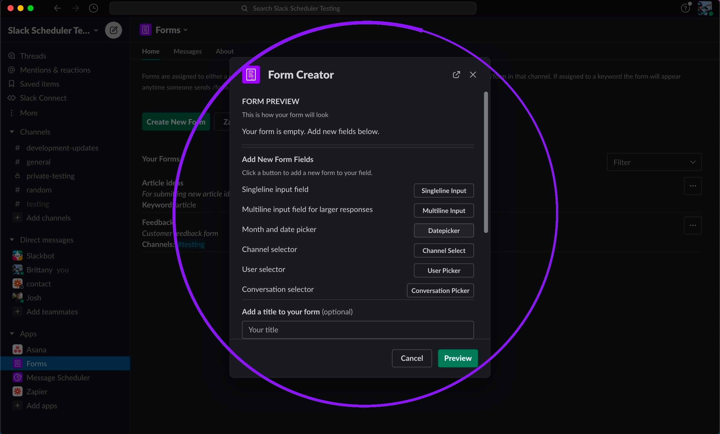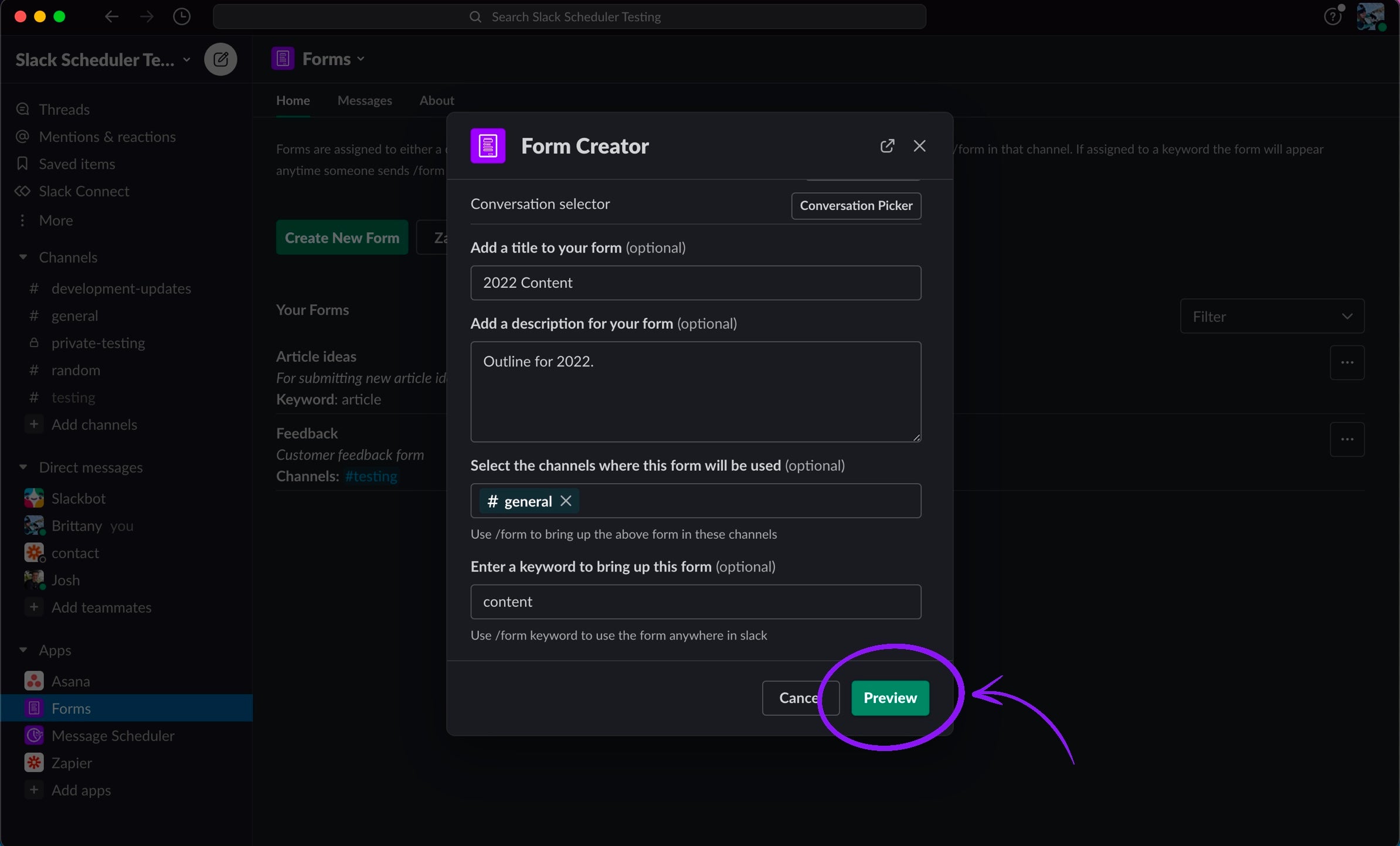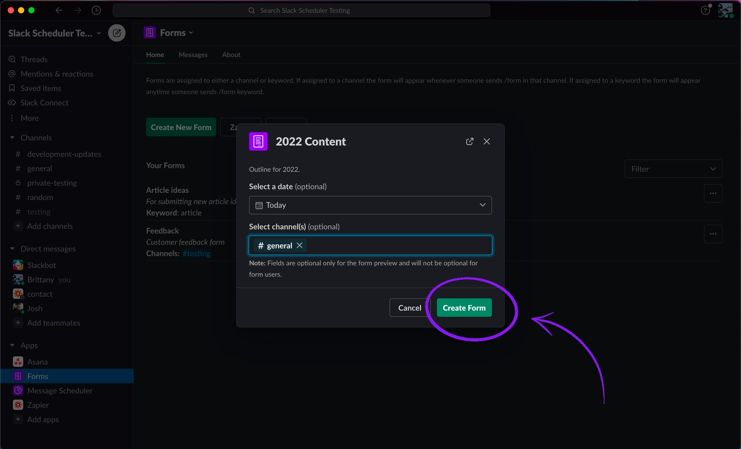 8. Test your form using the /form Slash command